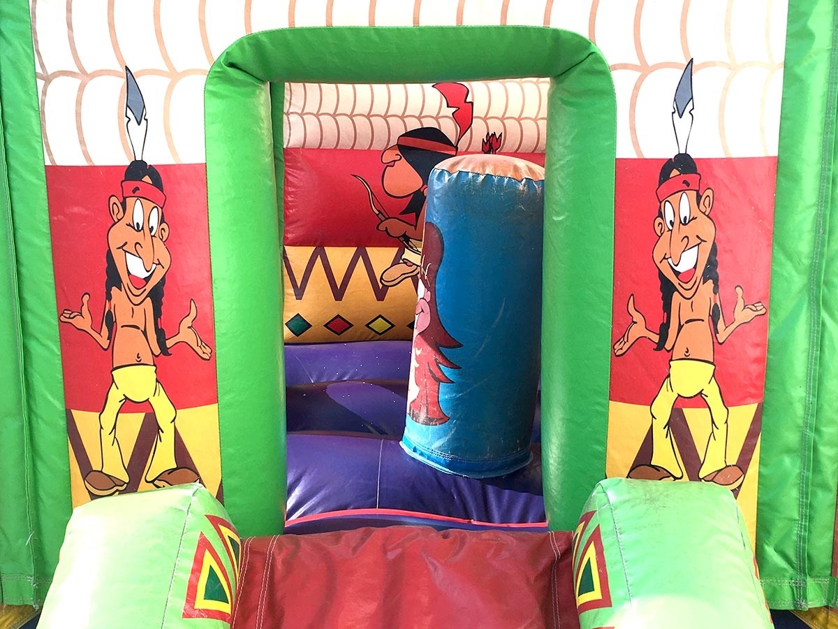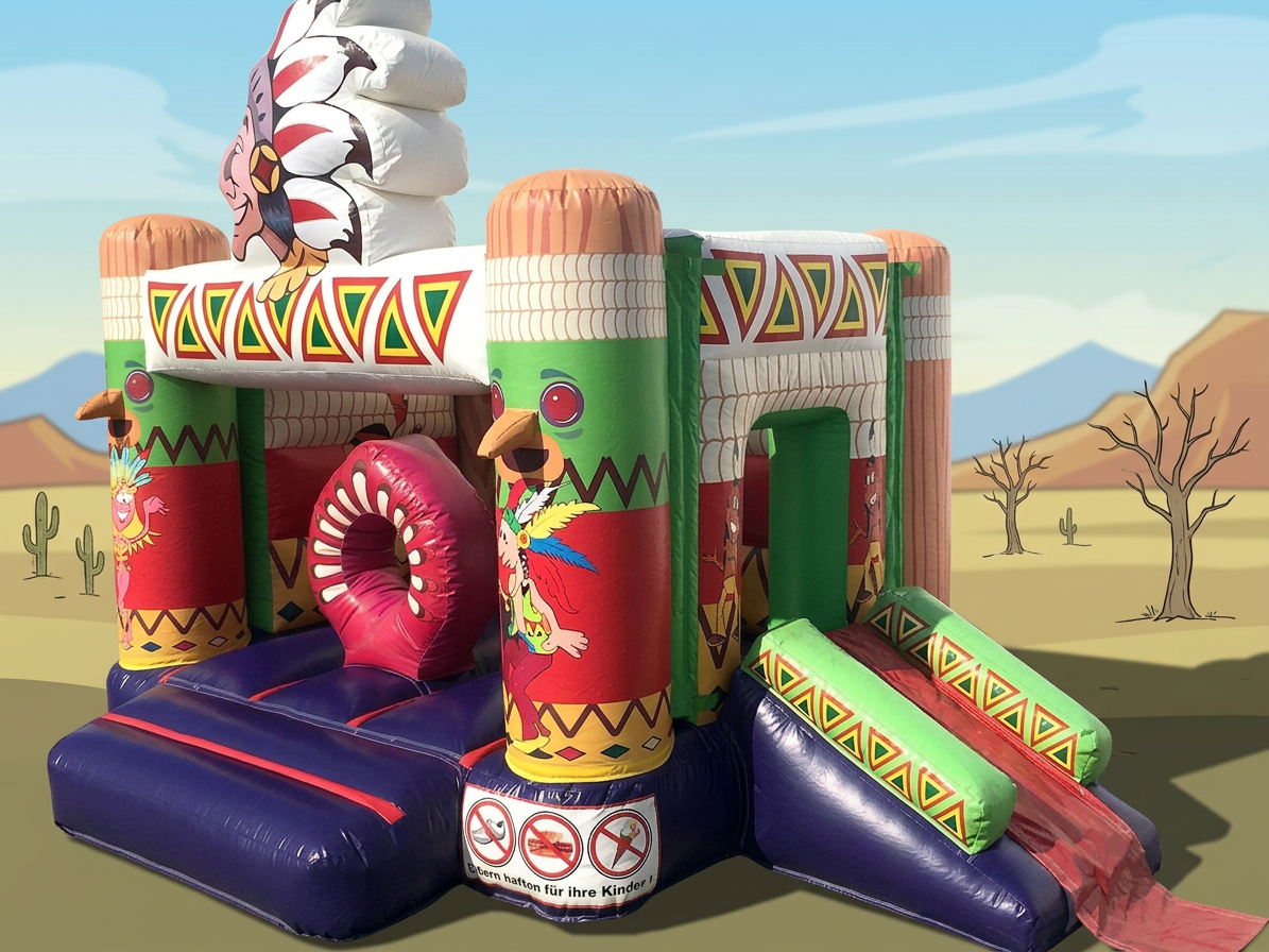 Diese Hüpfburg hat zusätzlich eine Rutsche für noch mehr Spielspaß. Eine kleine Hüpfburg für bis zu 5 kleine Indianer auf Ihrem Fest. Der Vorteil: Sehr leichte Selbstabholung und unkomplizierter Aufbau. Die Hüpfburg passt in dein Auto, frag einfach nach. Die Grundfläche beträgt 14m². Die Hüpfburg Winnetou kann für private Feiern aber auch für Firmen-Jubiläen, Sommerfeste, Neueröffnungen und öffentliche Kinderfeste gebucht werden. Die Hüpfburg sieht nicht nur grandios aus. Sie erfüllt auch die strengen DIN-Normen für den Einsatz im öffentlichen Bereich. Länge: ca. 350 cm Breite: ca. 400 cm Höhe: ca. 300 cm Grundfläche: ca, 14,00 m² Hüpffläche ca. 200 x 200cm Paketgewicht: ca. 70 kg max. Belastungsgewicht: 250 kg (8 Kinder). Wichtig nur Kindern ist das Betreten der Hüpfburg gestattet, aber gönnen wir den Kids auch einfach einmal die Ruhe vor uns Eltern.